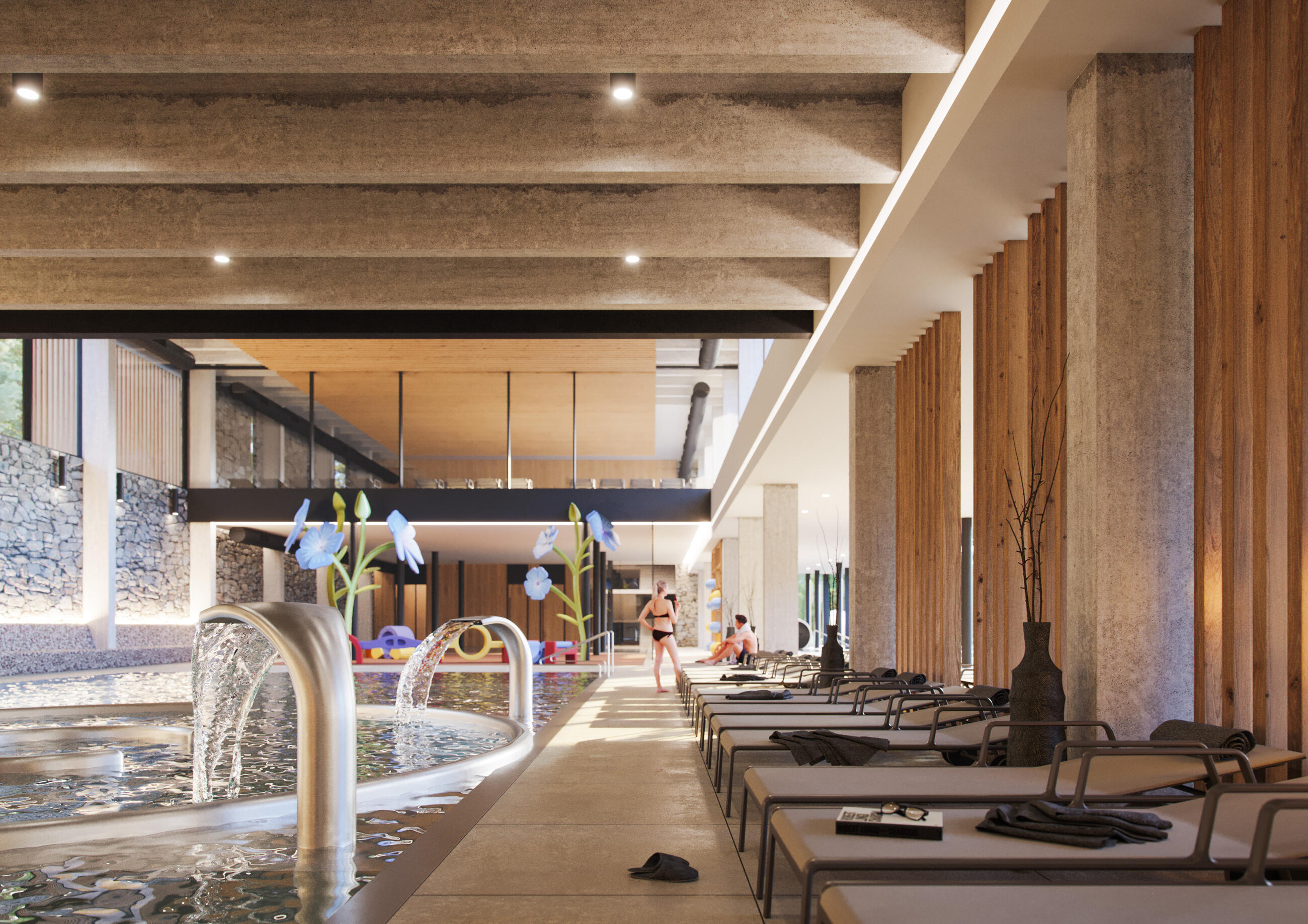 Bazénová část nabídne na ploše 550 m2 skvěle vyžití pro celou rodinu, ať už tu zakončíte svůj den strávený na horách nebo vezmete své děti za zábavou.