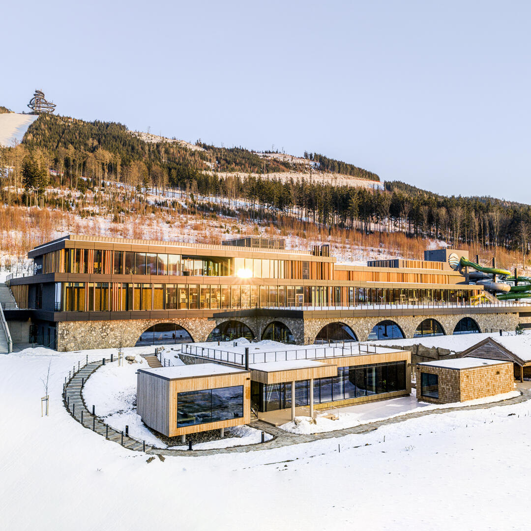 Ponořte se do relaxačních bazénů i originálního tematického spray parku pro děti s tobogány. Objevte působivý saunový svět uvnitř i venku s jezerem, vodopády a wellness čajovnou.