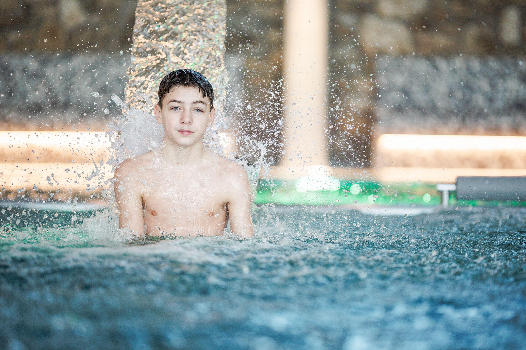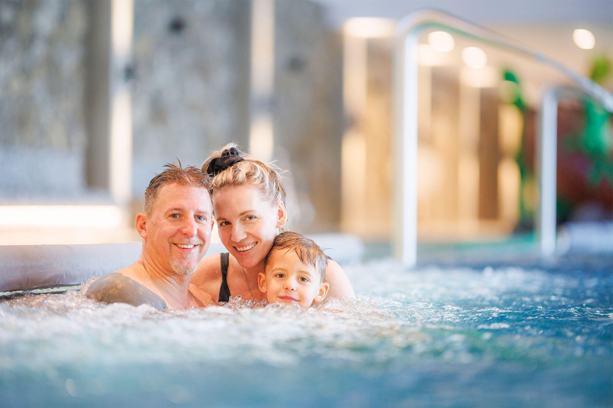 Naložte se do bublající teplé vody a dopřejte si příjemné uvolnění na masážních lavicích, pohupujte se ve vodních gejzírech nebo namasírujte svou šíji pod vodními chrliči.