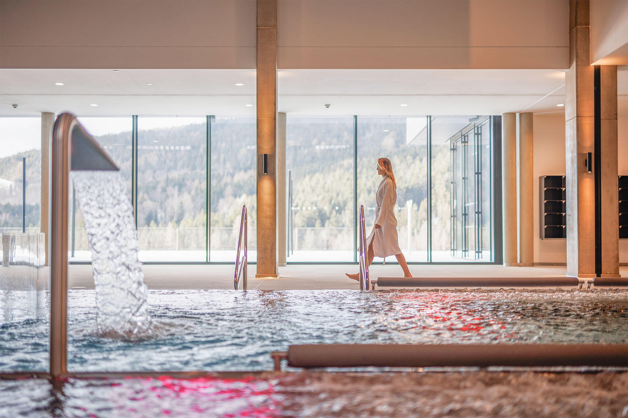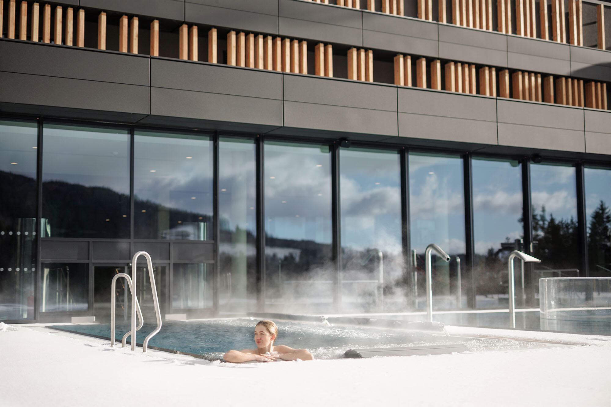 Stačí se nechat nadnášet vodou, uvolnit vaše tělo i mysl a vychutnávat si nádherné výhledy, které dokreslují jedinečný zážitek z horského wellness.