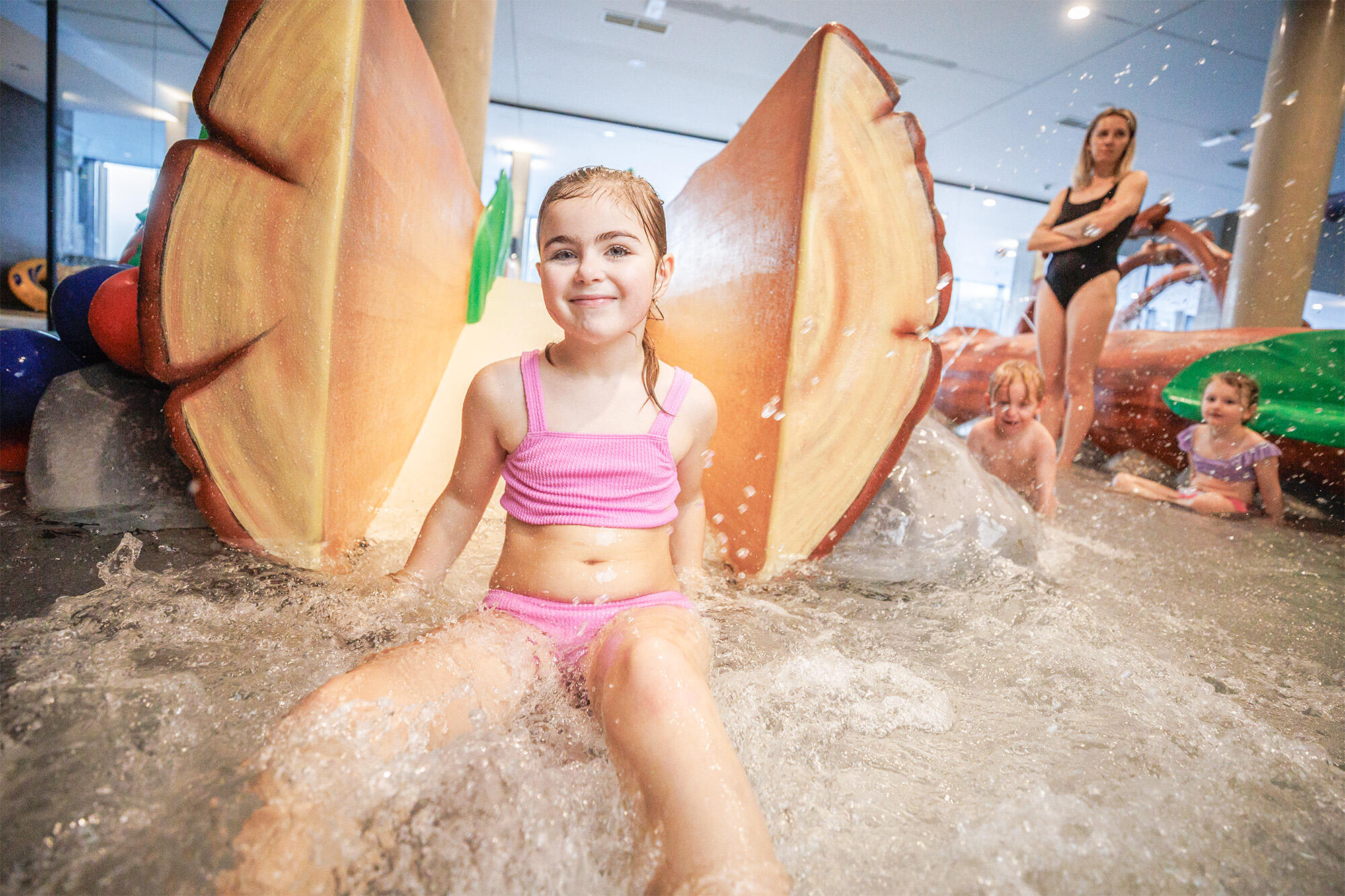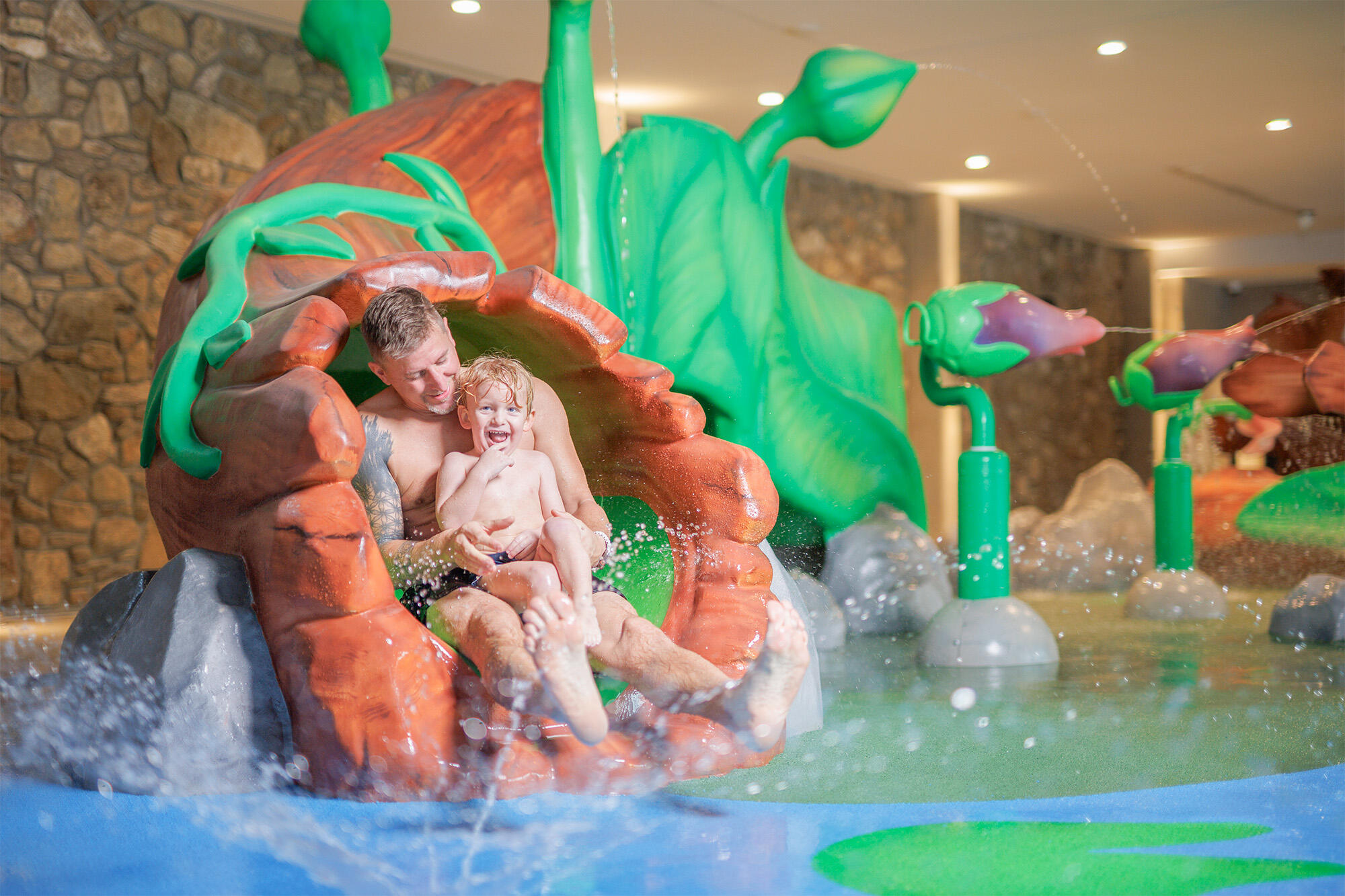 Originální vodní park inspirovaný horským lesem a rozkvetlou loukou zaujme na první pohled děti i dospělé. Malým hostům přináší více než 150 m² radosti a dovádění.