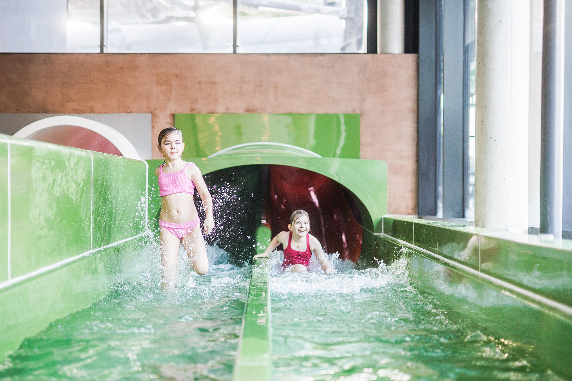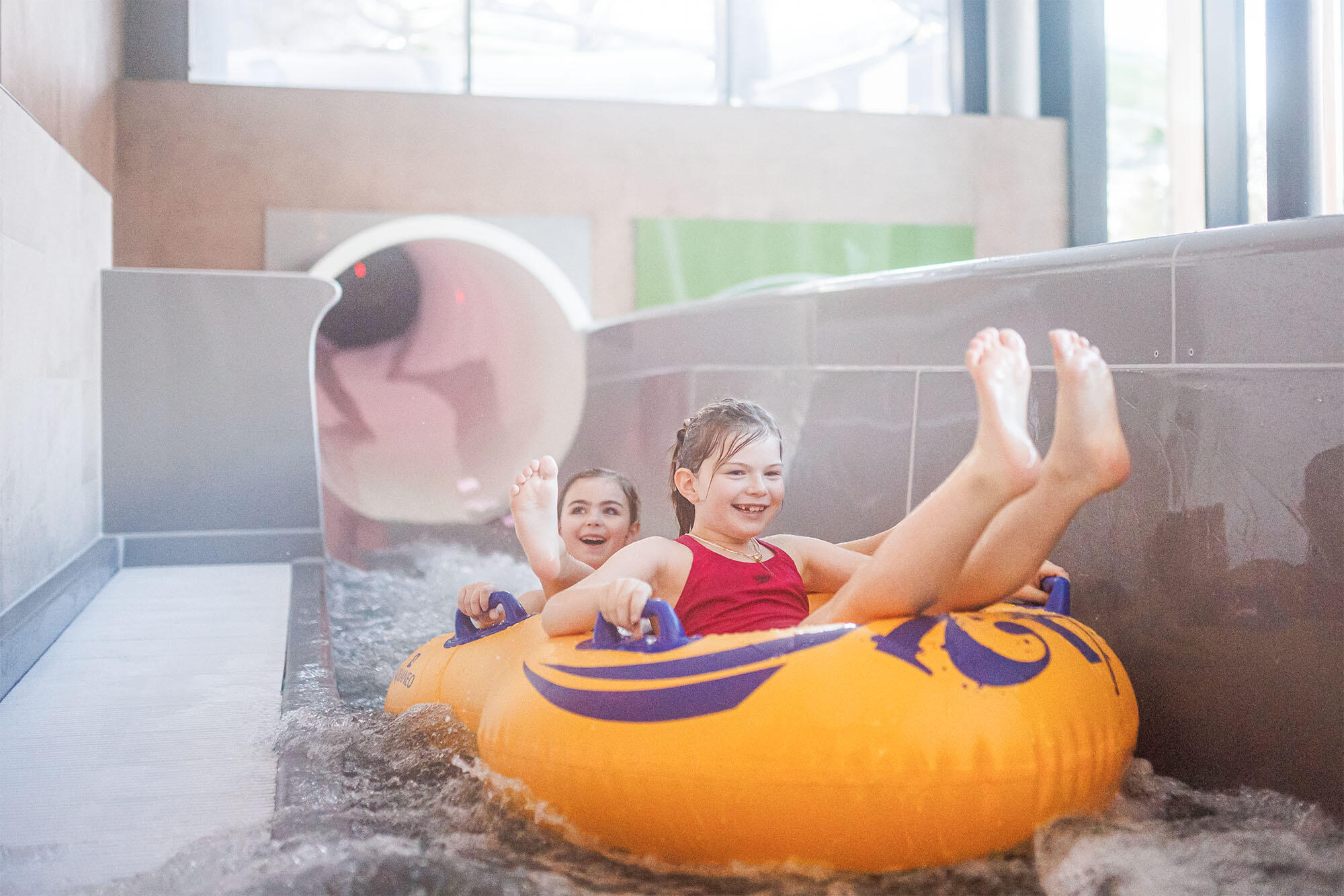 Velkorysé bazénové patro přináší více než 550 m2 zábavy i odpočinku ve vodě. Užijete si zážitkový bazén s masážními prvky, venkovní výplavový bazén s panoramatickým výhledem, originální dětský Spray park s brouzdalištěm nebo tři tobogány s délkou přes 90 metrů.