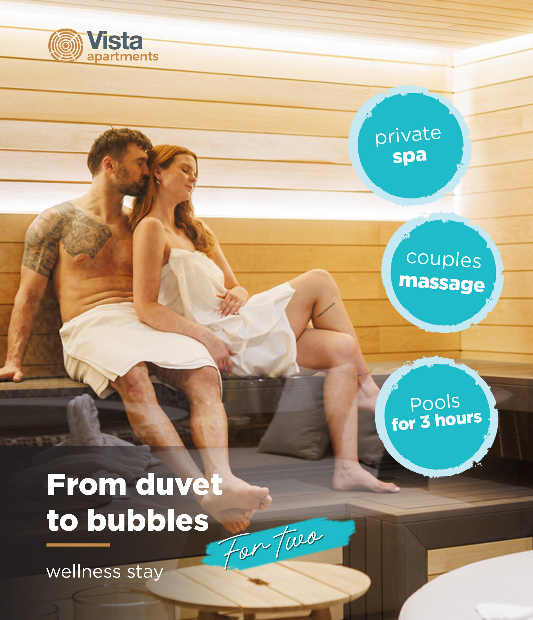 Accommodation for 2 nights at Vista Apartments, including private wellness and a couples massage in the price of the stay.